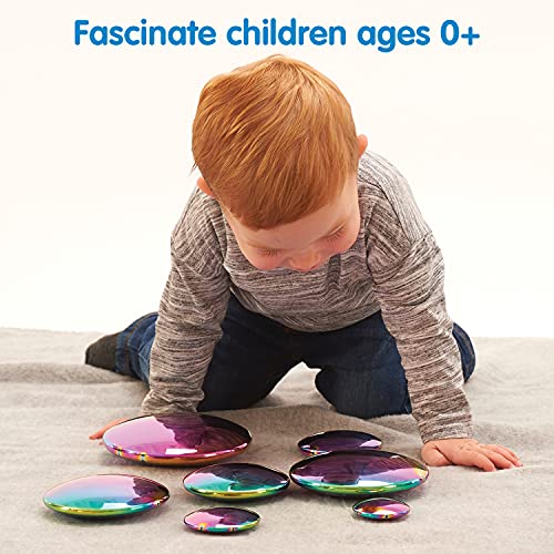 FOSTER LINGUA DESCRIZIONE: i dischi sensoriali lisci riflettono immagini ed effetti colorati, che incoraggiano i bambini a mettere in discussione ciò che vedono. Sono un incantevole strumento di osservazione per giocare al chiuso