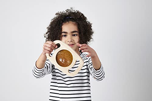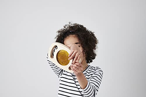 Montature in legno massiccio di gomma con maniglie facili da tenere che racchiudono un pannello di glitter oro scintillante