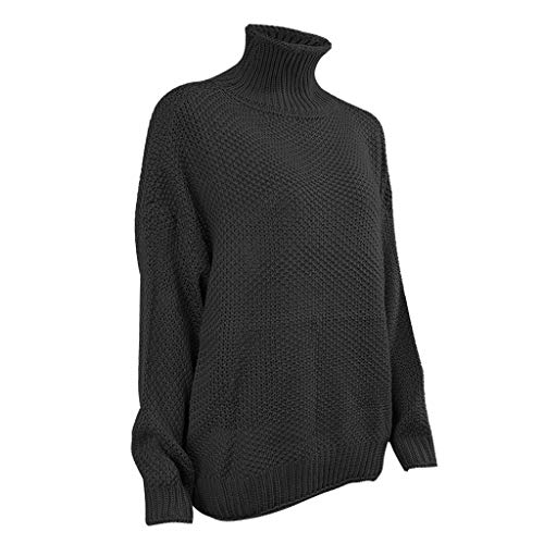 Ticticlily Maglione da Donna Collo Alto Lunga Autunno Leggero Pullover in Maglia di Lana Invernale Tenere Caldo Top Nero XL