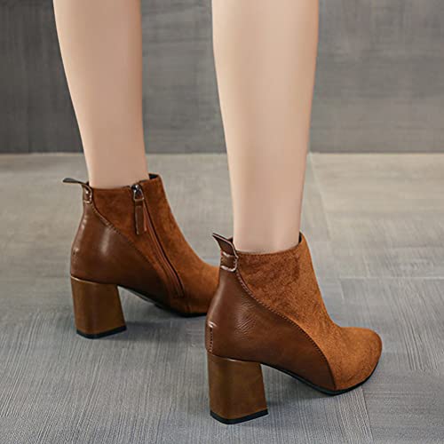 Ticticlily Stivali Donna Moda Colore Puro a Punta Cerniera Tacchi Quadrati Vintage Stivali da Passeggio Marrone 35 EU