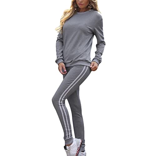 Tidecc Tuta da donna, set completo, a maniche lunghe, con righe laterali su tutto il set, per corsa, palestra, allenamento