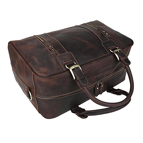 Tiding, borsone da viaggio con manici, da uomo, in stile classico, in vera pelle, ideale come borsone da palestra, borsa a tracolla, borsa a tracolla Marrone light brown 18.5" x 10.2" x 9.1"