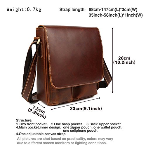 Tiding Uomo Classico vera pelle Tempo libero Casuale cartella Messaggero Crossbody Borsa a tracolla Marrone