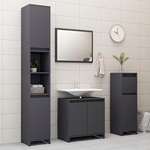 Tidyard Armadio da Bagno Grigio 30x30x95 cm in Truciolato,1 Cassetto e 1 Ant