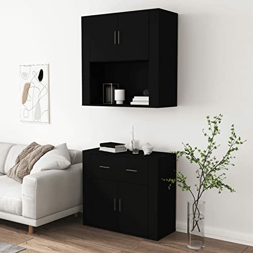 Tidyard Credenza Nero in Legno Multistrato,Credenza Soggiorno Cucina,Arredamento da Cucina,Credenza Alta per Cucina,Credenza Combinato,Armadio Sospeso+Mobile Credenza,Convenienza Madia