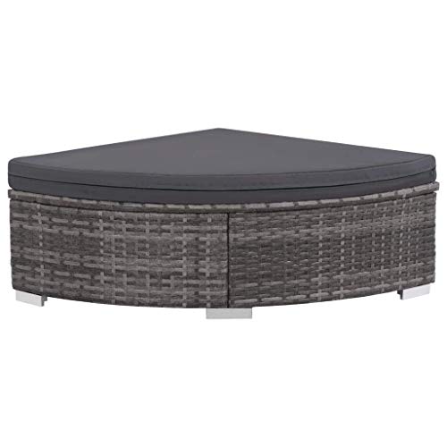Colore: Grigio e grigio scuro Materiale: Rattan PE (polietilene) + telaio in acciaio verniciato a polvere Materiale fodera dei cuscini: 100% poliestere Spessore cuscino: 6 cm Dimensioni poggiapiedi quadrato: 70 x 70 x 26 cm (L x P x A) Dimensioni poggiapiedi ricurvo: 70 x 70 x 26 cm (L x P x A)