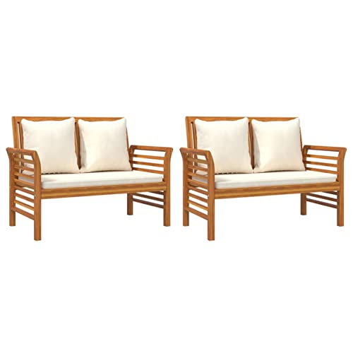 Tidyard 5 pz Set, Divani da Giardino, in Legno di Acacia, con Cuscini, Salotto da Giardino da Esterno, Set 2 Poltrone e Tavolo e 2 Divani Panche da Giardino per Esterno in Legno, Bianco Crema