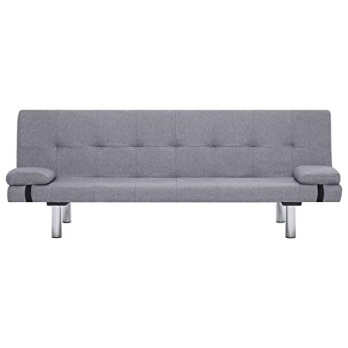 Tidyard Divano Letto con 2 Cuscini in Legno e Similpelle | Grigio Chiaro