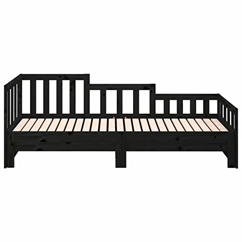 Tidyard Divano Letto Estraibile,Dormeuse Estraibile,Divano Letto con Secondo,Divano Letto in Legno,Divano Letto Scomparsa,Divani Letto Due Posti,Divano Letto con Doghe in Legno,Nero 2x(90x190) cm