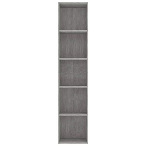 Tidyard Libreria Grigio Cemento 40x30x189 cm in Truciolato,Include 5 Ripiani Aperti