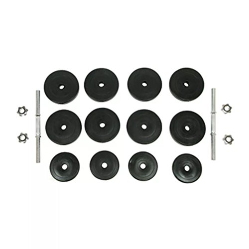 Questo set si compone di due manubri del peso di 15 kg., corredati di dischi con peso compreso tra 1,25 e 2,5 kg, calibrabili in base al livello di esercizio che volete affrontare.