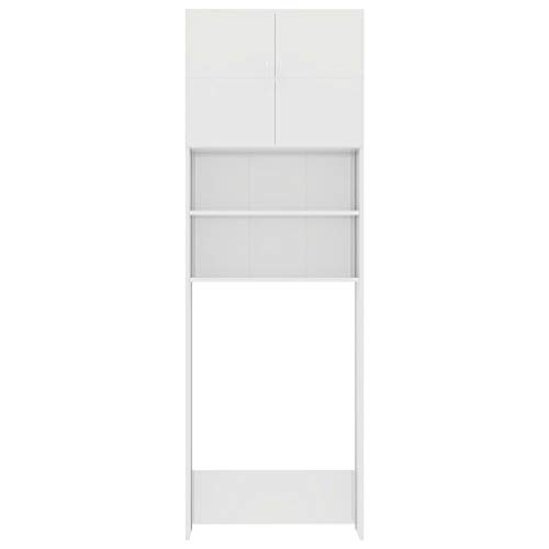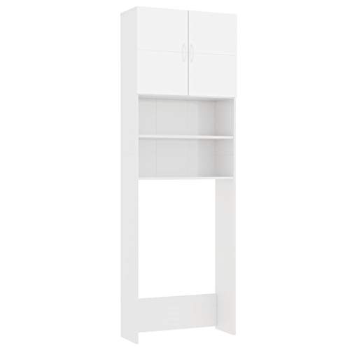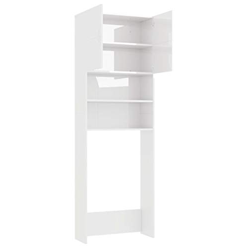 Tidyard Mobile per Lavatrice, Mobiletto Bagno, Armadio Alto per Lavatrice, con 2 Ante e 2 Scomparti Aperti, 64x25,5x190 cm in Truciolato Bianco Lucido