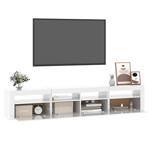 Tidyard Mobile Porta TV con Luci LED,Mobile TV Moderno Tavolino Porta TV con Strisce Luci LED,Mobiletto TV Moderno,Armadio per TV,Mobiletto Basso Porta TV,per Soggiorno,Bianco Lucido