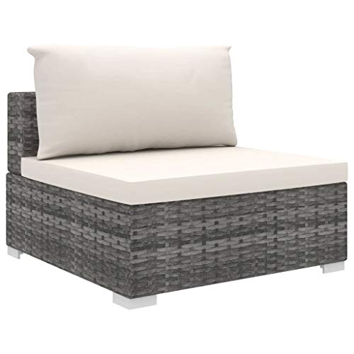 Tidyard Set di Mobili da Giardino in Polyrattan, Set Divani 3 Posti da Giardino/Esterno con Cuscini e Tavolino 4 pz, Leggero e Modulare, Grigio