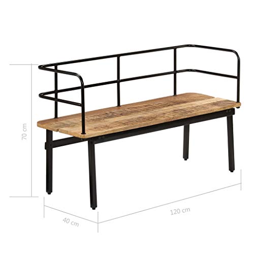 Tidyard Panca Stile Industriale in Legno Massello di Mango,Panca Vintage,Panca da Giardino,Panca da Esterno,Panca 2 Posti,Panca con Braccioli,Panca da Interno 120x40x70 cm