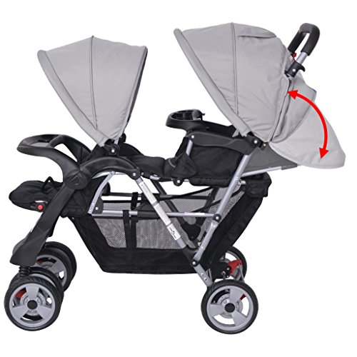 Questo comodo passeggino doppio a tandem è un passeggino perfetto per portare entrambi i tuoi piccoli in passeggiata. Con un telaio in acciaio, questo passeggino è molto resistente, forte e versatile. Questo confortevole passeggino ha 2 tettoie pieghevoli che forniscono protezione contro il sole e dai raggi UV.