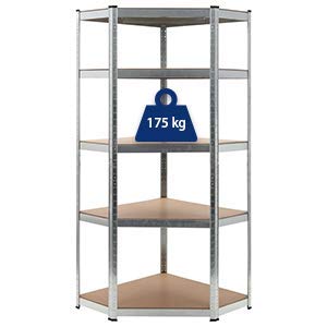 Tidyard Scaffale Angolare con 5 Ripiani, Scaffale per Garage Officina, in Acciaio zincato e MDF, capacità di Carico Fino a 175kg per Ripiano, 75x75x180 cm Argento