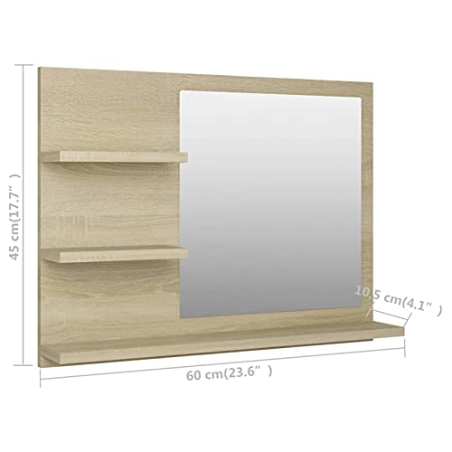 Tidyard Specchio da Bagno,Rettangolare,Specchiera per Bagno,Specchi,Specchio bagno,Specchio a Parete,Specchio da Bagno con 3 Ripiani,Armadio a Specchio Rovere Sonoma 60x10,5x45 cm in Truciolato