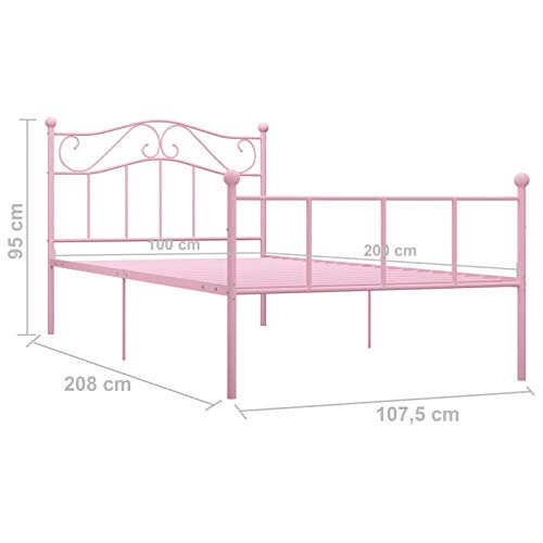 Tidyard Struttura Letto,Singolo,in Metallo,Rosa,Design Francese,con Doghe,100x200 cm,Giroletto Singolo in Metallo,Letto con Doghe,Letto in Metallo,Letto Singolo,Letto Singolo Metallo 100x200 cm