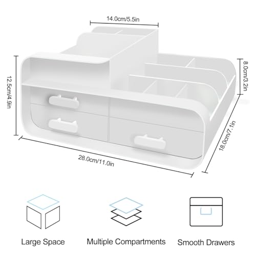 TIE-DailyNec Organizzatore di Trucco, Porta Trucchi Organizer con Cassetti, Scatola Cosmetica Porta Organizer Adatto per Rossetti, Pennelli per il Trucco, Lozioni e Creme (Bianco)