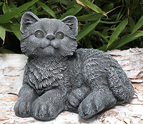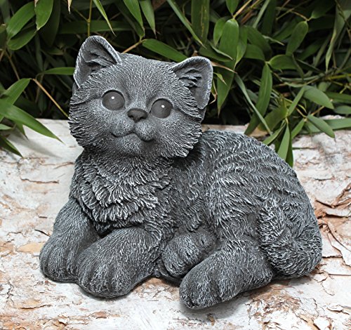 Tiefes Handicraft - Statua ornamentale da giardino a forma di gatto seduto, in pietra artificiale, colore: Grigio ardesia