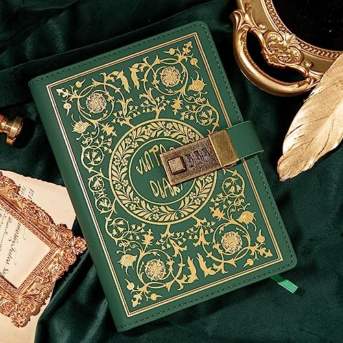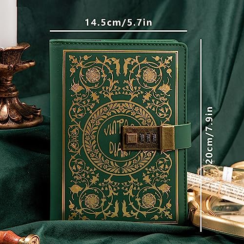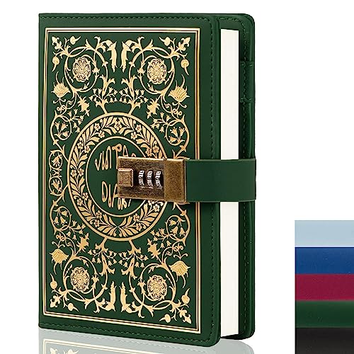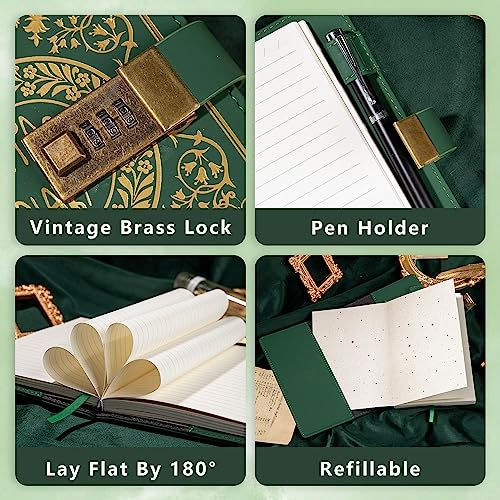 TIEFOSSI Diario Bloccato per Donne, Diario Floreale Vintage con Serratura a Combinazione B6 Quaderno Segreto per Ragazze, Carta a Righe Ricaricabile (Verde)