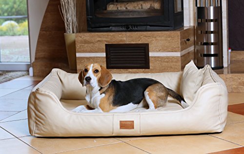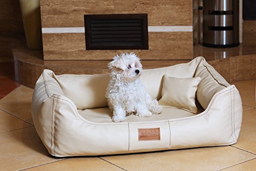 Tierlando Maddox Ortho Visco Letto Ortopedico Cane Velour Cuoio Arte Divano per Cani Cesta per Cani TGL XXL 150 cm Crema