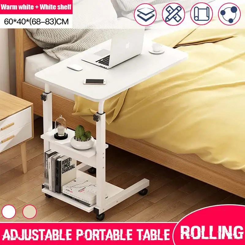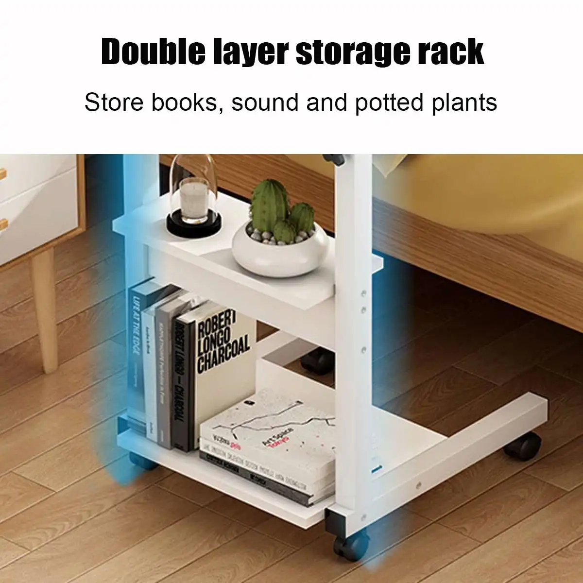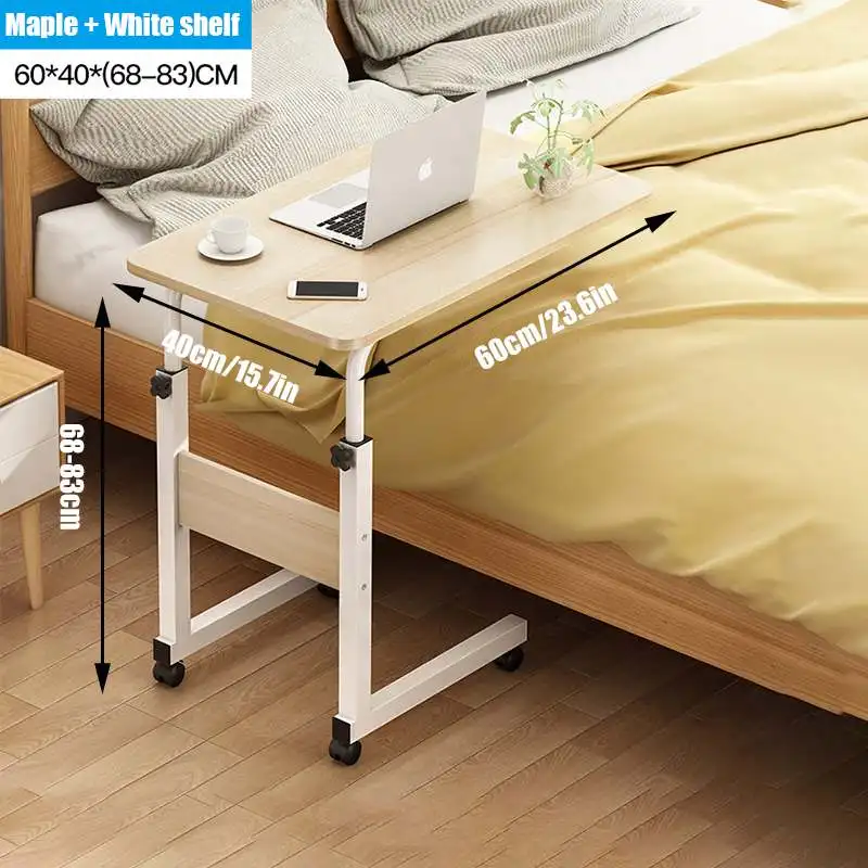 3 Tiers Adjustable Height Laptop Desk Wooden Bedside Computers Desk Removable Sofa Side Study Stand Portable Bed Table 60x40cm