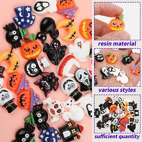 TIESOME Ciondoli fai da te per Halloween, 50 pezzi per la creazione di gioielli di Halloween, simpatici ciondoli a forma di zucca, fantasma, pipistrello, ornamenti in resina, per scrapbooking,