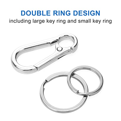 TIESOME Portachiavi con Moschettone con Portachiavi Staccabile, 2 Pezzi Doppio Anello in Lega di Zinco Portachiavi per Auto Portachiavi con Moschettone per Uomo Donna (Argento)