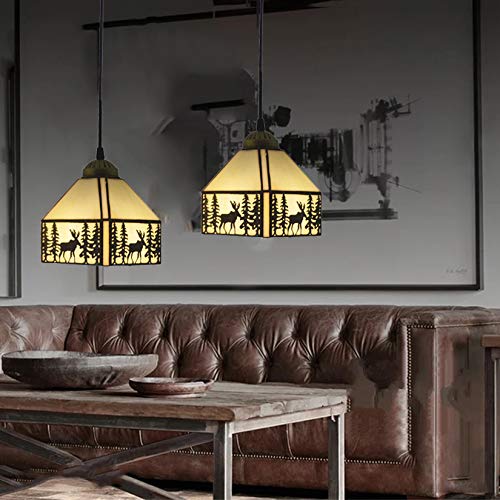 Tiffany Pendant Light Country Elk Appeso Lampada Appeso Rotondo Rustico Vetro Tinto Decorazione Soffitto Design Vintage Design Vintage per Soggiorno Sala da Pranzo Corridoio Balcone,E27