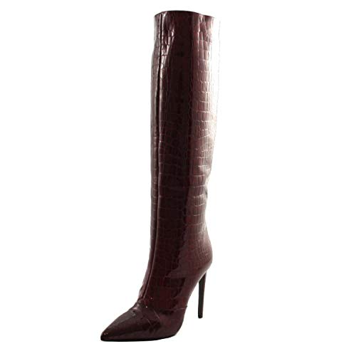 Tiffi Stivali Alti a Punta, Donna, Eco Vernice pitonata Color Rosso Rubino. Cerniera Laterale. Tacco Slim da 9,5cm. N.39