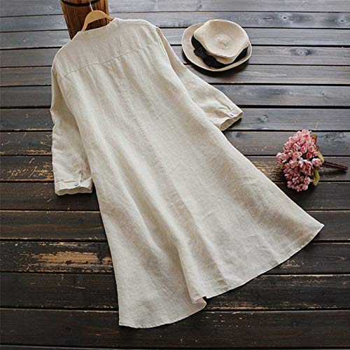 TIFIY Camicia per Le Donne, Allentato Casuale Camicetta a Maniche Lunghe in Lino Soild con Bottoni Lunghi