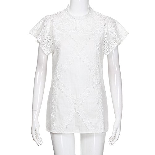 TIFIY T-Shirt Donna Maglietta Casual da Donna Camicetta Patchwork in Pizzo da Donna Camicia a Manica Corta Flare Ruffles Carina Floreale Superiore (Bianco, XXL)