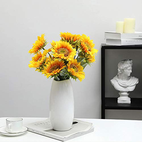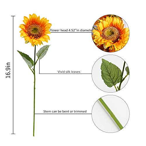 Tifuly 6 Pezzi Girasoli Artificiali, Girasole Falso di Seta a Stelo Singolo Altezza 16,9 Pollici per la Decorazione Domestica del Giardino della Festa Nuziale dell'hotel, Disposizione Floreale