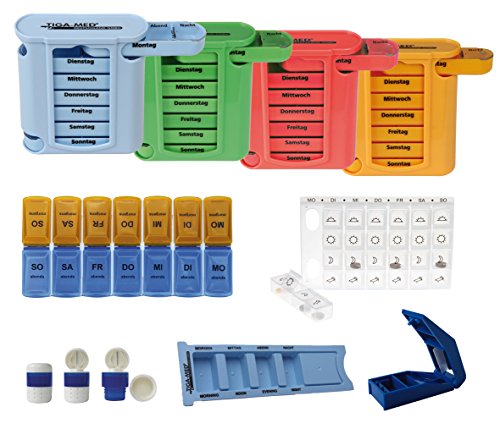 TIGA-MED - 1 Dispenser di medicinali Premium, colore: Rosso.