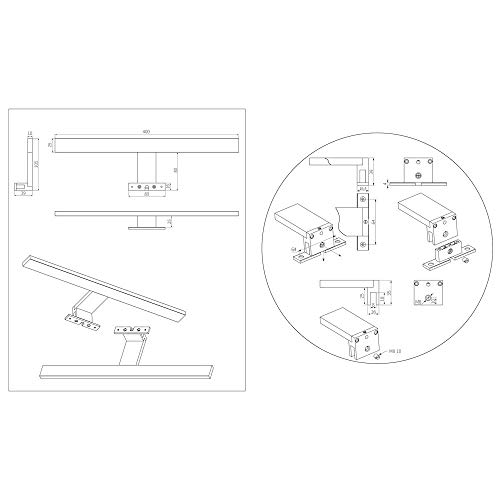 Tiger Aurel Lampada per specchiera LED, Alluminio, Acrilico, Vinile, Cromato, 40 x 3.9 x 10.5 cm