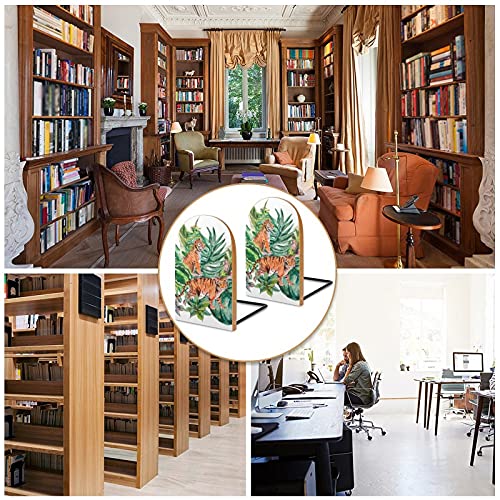 Tiger Botanical Tropical Leaves Fermalibri in legno 2 pezzi Supporto per libri antiscivolo per casa e ufficio Scuola Cucina Robusti portalibri per libri pesanti 5x3 pollici