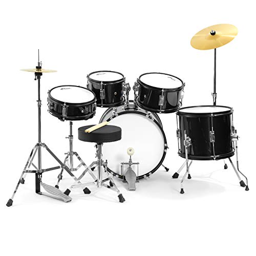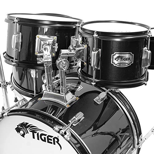 TIGER JDS14-BK Batteria per ragazzi 5 pezzi, con rullante, tom, basso, pedale, piatti, Hi-Hat, bacchette e sgabello - colore nero