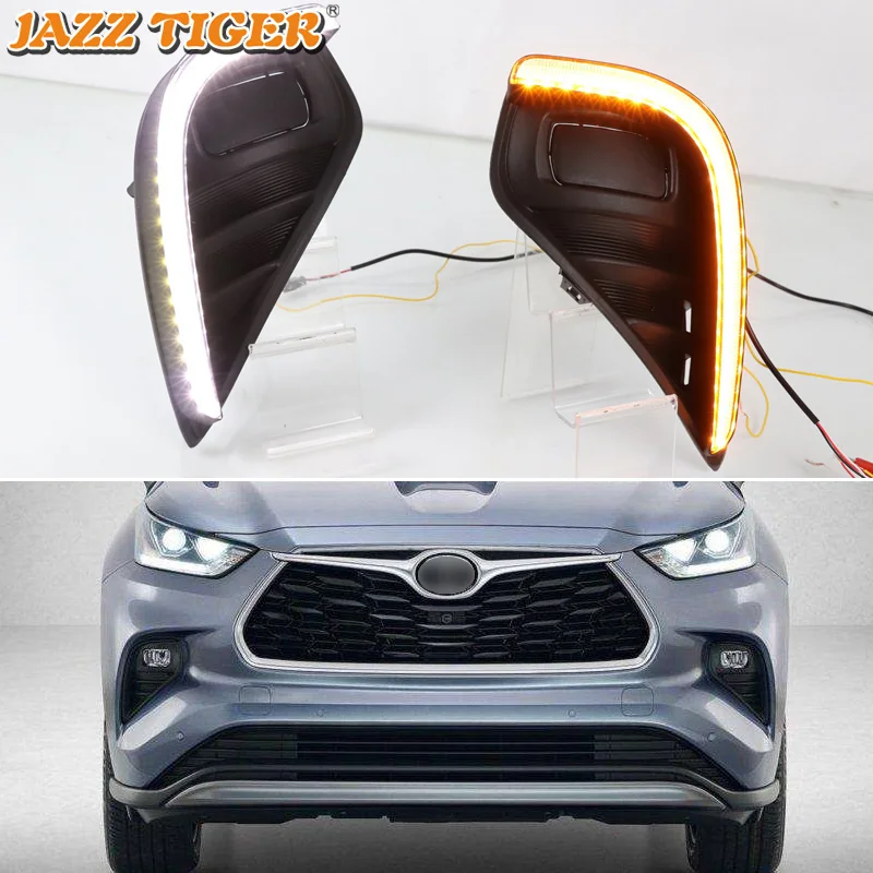 JAZZ TIGER 2PCS Yellow Turn Signal Function 12V Car DRL Lamp LED Daytime Running Light Day light For Toyota Highlander 2020 2021