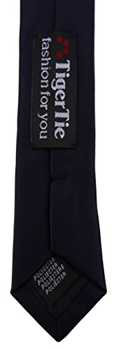 TigerTie Cravatta di design sottile in tinta unita - Tie Clip, Nero/Blu, Taglia unica