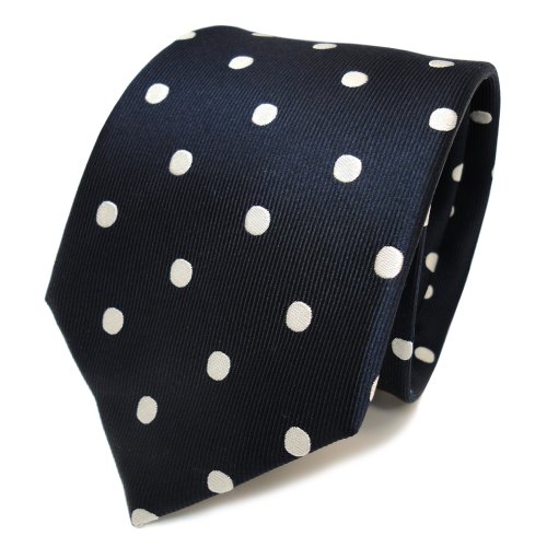 TigerTie Designer Cravatta in seta - blu scuro blu nero bianco a pois
