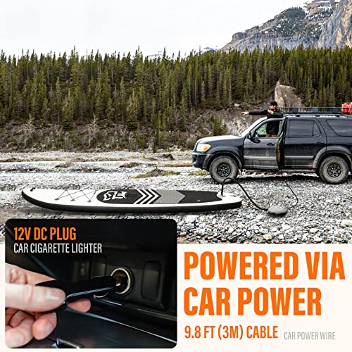 Connettore da auto 12 V DC: collega la spina accendisigari al cavo di alimentazione da auto 12 V DC dell'auto. Cavo di alimentazione da 3 metri e tubo gonfiabile da 1 metro, abbastanza lungo per raggiungere una tavola SUP fuori dall'auto.