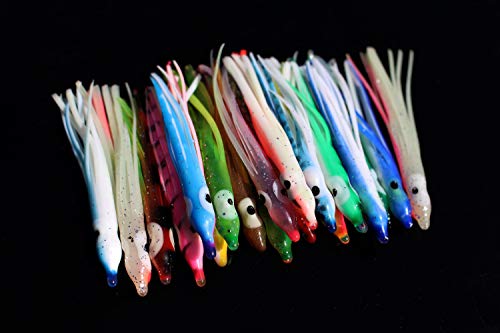 Tigofly 20 pezzi 6 cm Gonne in gomma di calamari morbide esche da pesca per polpo esche con cappuccio Sabiki Attrezzatura da pesca artigianale accessori