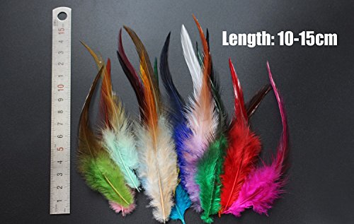 Tigofly, set da 60 piume di gallo, lunghezza dai 10 ai 15 cm, 15 colori assortiti, ideali come esche artificiali