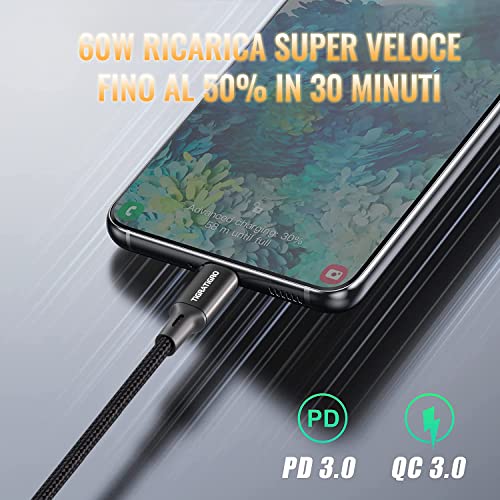 【Sincronizzazione e carica ad alta velocità】Cavo USB Type-C 60W PD di Ricarica Rapida per il tuo dispositivo elettronico. Supporta fino a 60W 20V/3A di ricarica sicura e velocità di trasferimento dati fino a 480Mbps di cavo tipo C.