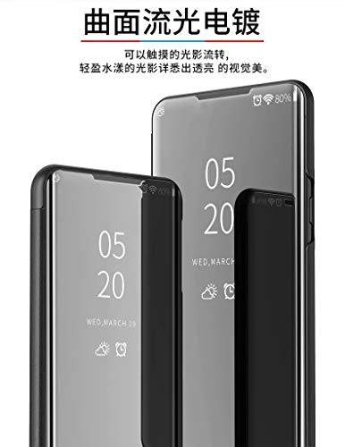 TiHen Cover Oppo A9 2020 Custodia Clear View Specchio Standing Cover Caso Flip Case Custodia + Pellicola Vetro temperato 2 Pezzi 360° Protettiva Bumper per Oppo A9 2020 Nero