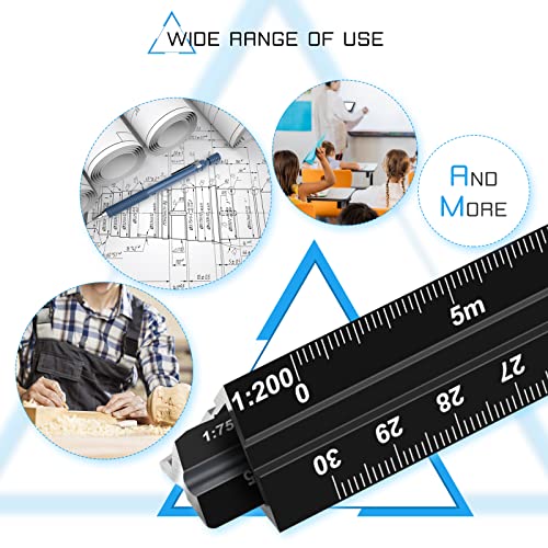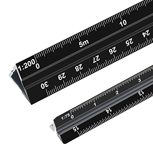 TIHOOK 2 righelli per scale in alluminio, 30 cm, triangolari, scala triangolare per architetti e ingegneri, 1:20, 1:25, 1:50, 1:75, 1:100, 1:125/1:100, 1:200, 1:250, 1:300, 1:400, 1:500