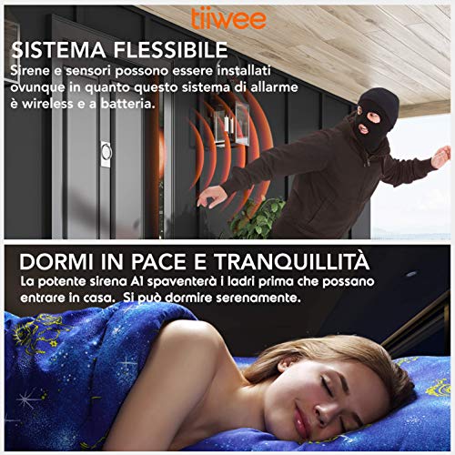 ESPANDIBILE - Espandete il kit antifurto casa senza fili con altri accessori Tiiwee Home Alarm System quali sensori porte & finestre, rilevatori di movimento, sirena allarme o telecomandi. Su ogni unità di allarme possono essere aggiunti 40 sensori.