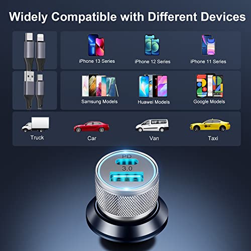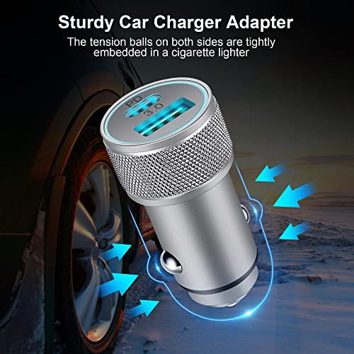 TIKALONG Presa USB C per Auto con Cavi Intrecciati in Nylon Lightning e Type-C, Caricabatterie/Caricatore per Accendisigari a 2 Porte con PD20W e QC18W Compatibile con iPhone, Samsung, Xiaomi
